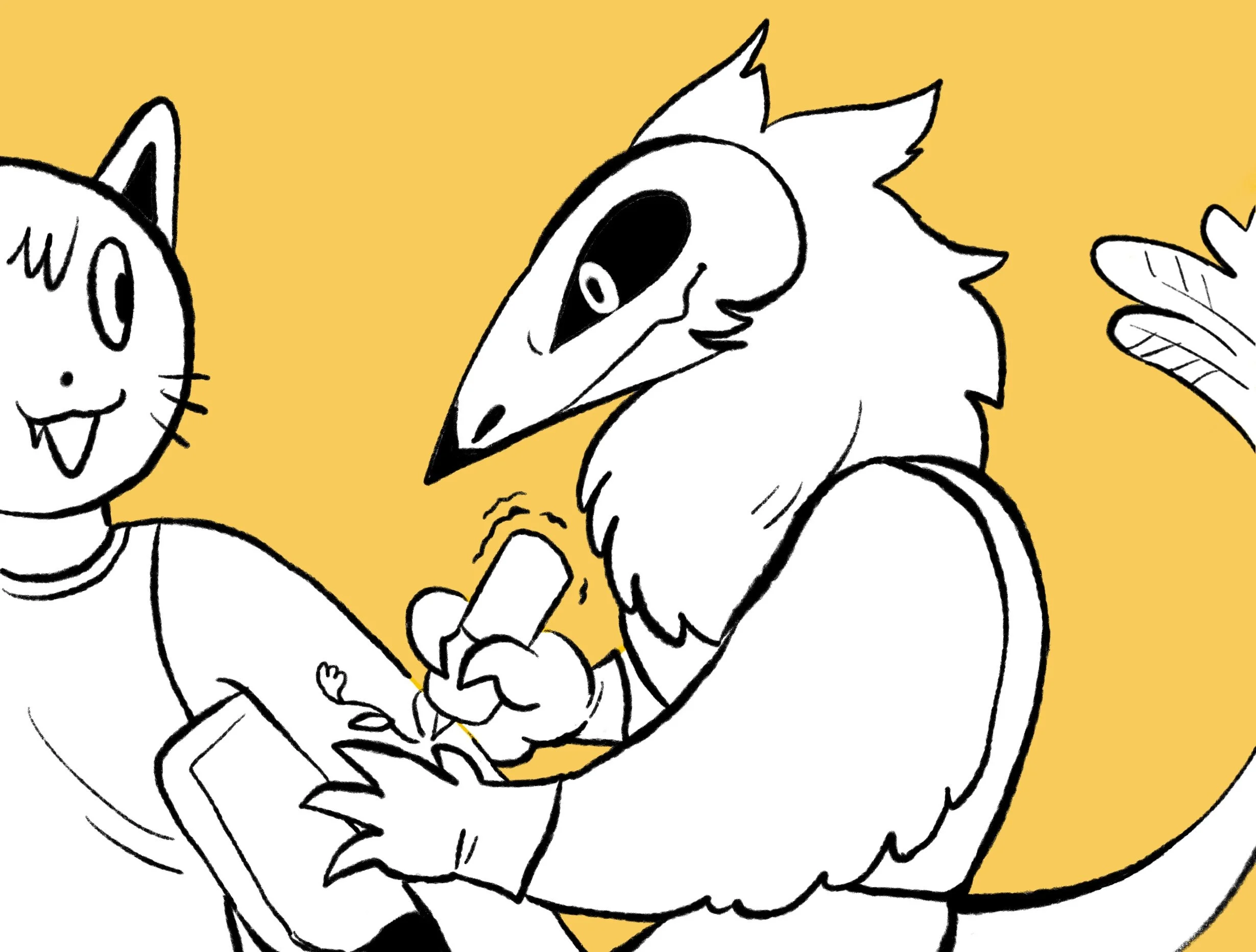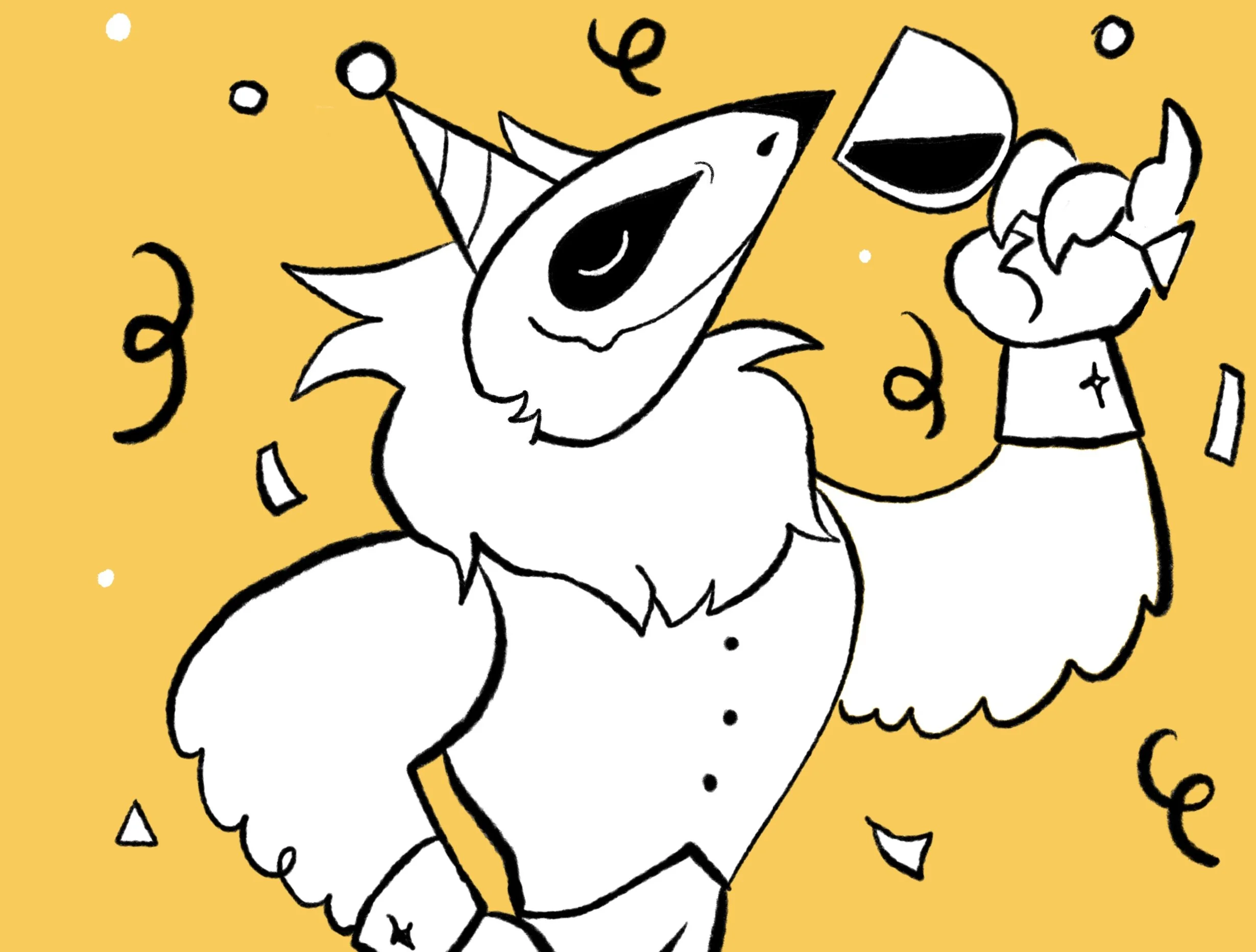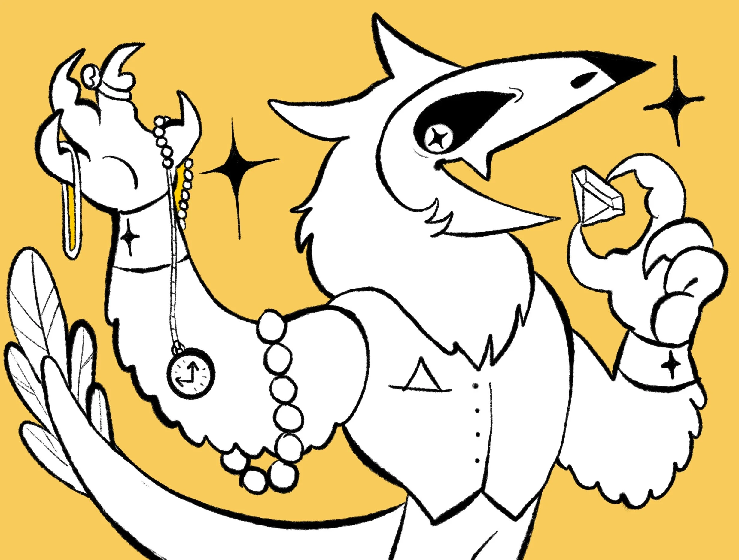 That’s Mister Unkindness, Unkindness Art’s very own fursona! You can call him “Mister”. He’s a raven-gryphon designed by resident artists Liam Williams and Frankee Graves.